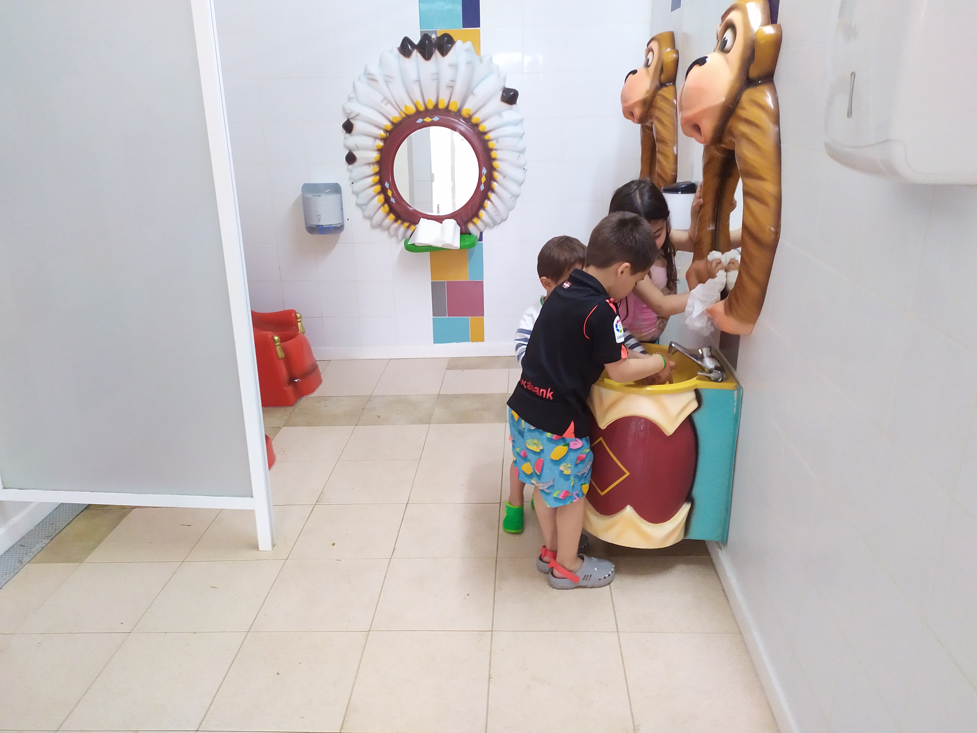 Otro de los lugares en el que los resacosos disfrutaron un montón fueron los baños públicos, si si, lo baños públicos. Cuando la resacosa vino el primer día toda emocionada a decirme «mamaaaaaaa mira, ven, ya veras que sitio más chuli he encontrado» no le faltaba nada de razón. Monos de espejos, duchas de elefantes y tronos reales para hacer pis, vamos la excusa perfecta para irse a lavar las manos continuamente.